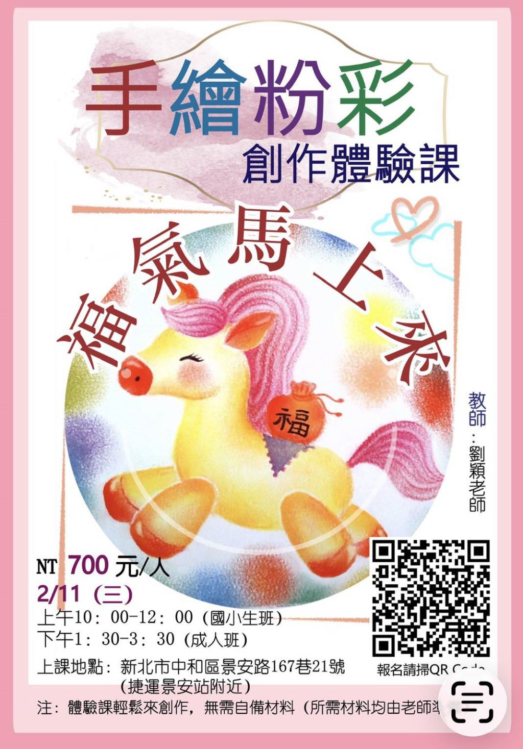 【手繪粉彩創作體驗課】115.2.11雙和教會『國小班10:00〜12:00、成人班13:30〜15:30』