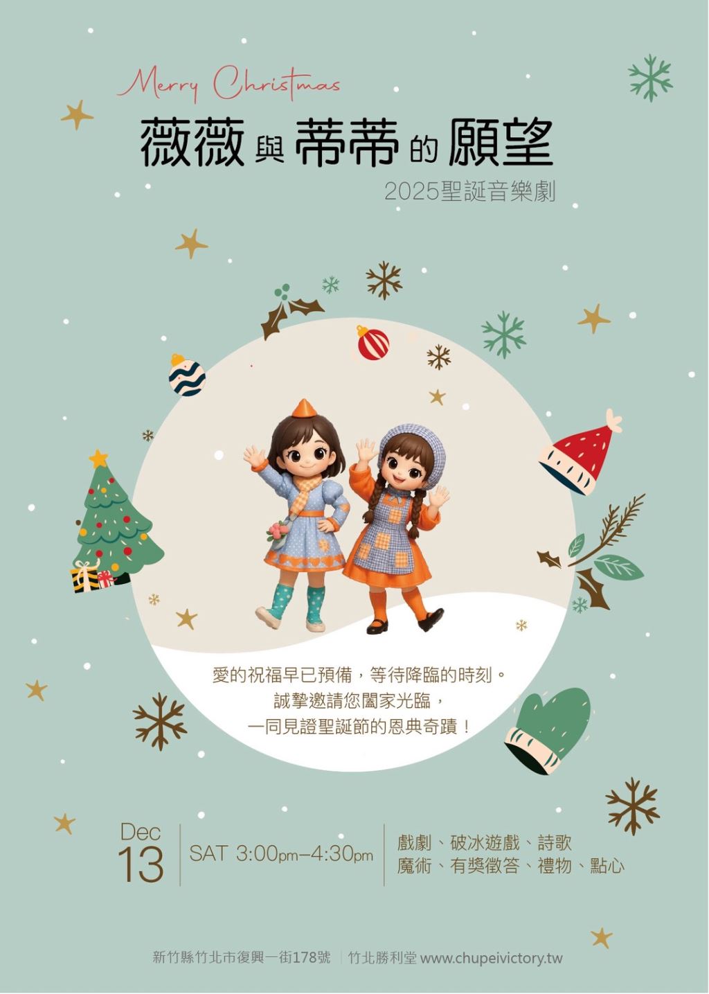 聖誕音樂劇【薇薇與蒂蒂的願望】竹北勝利堂114.12.13下午3:00〜4:30