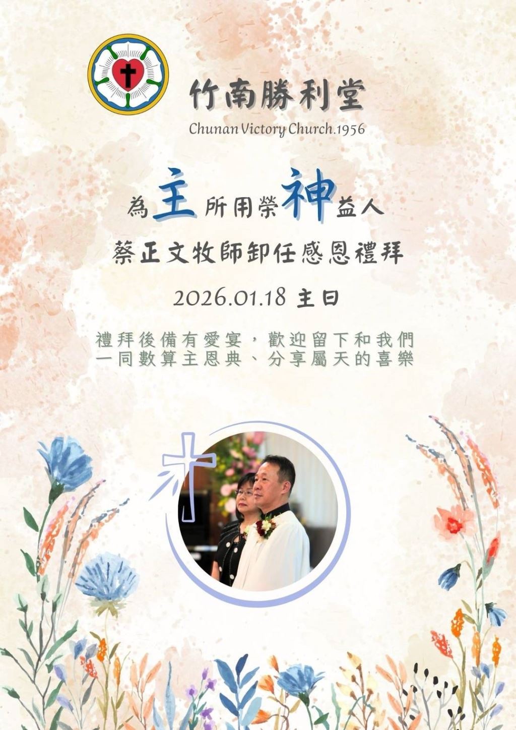 【蔡正文牧師卸任感恩禮拜】竹南勝利堂115.1.18主日與愛宴