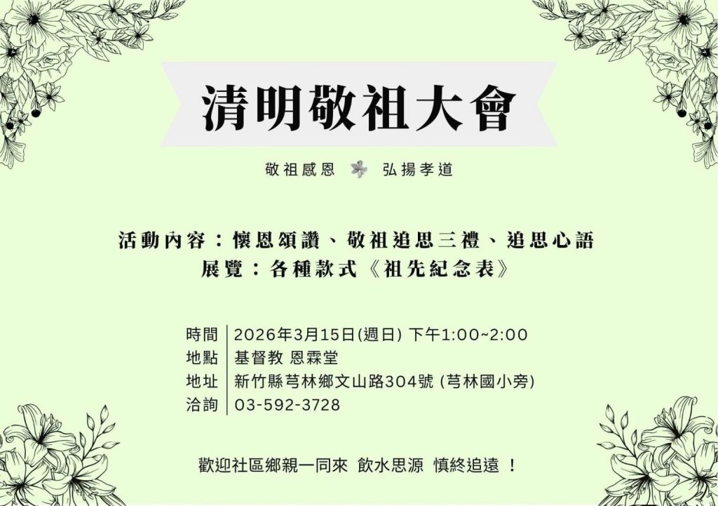 【清明敬祖大會】115.3.15恩霖堂13:00〜14:00